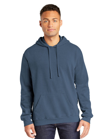 Description: Comfort Colors Pullover Hoodie. Fabric is soft-washed and preshunk 9.5 oz., 80% ringspun cotton, 20% polyester. Designed with a jersey-lined hood with matching flat drawcord and relaxed waistband for a more casual appearance. Colors: Blue Jean, Blue Spruce, Crimson, Denim, Flo Blue, Grey, Light Green, Pepper, Seafoam, True Navy and White. Sizes S-3XL
