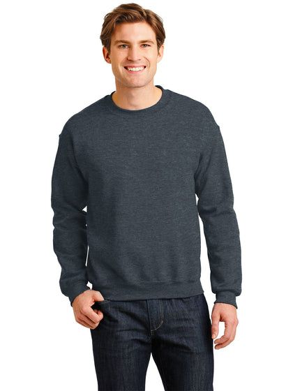 Description: Gildan G180 50/50 crewneck sweatshirt. Fabric is 8oz 50% cotton, 50% polyester. Gildan calls this item the Heavy Blend, but it is lighter weight fabric. Air Jet Spun Yarn creates a softer feel without pilling. Athletic rib collar and cuffs with Lycra, double-needle stitching throughout. Colors: Antique Cherry Red, Ash, Azalea, Black, Cardinal Red, Carolina Blue, Charcoal, Cherry Red, Dark Chocolate, Dark Heather, Forest Green, Garnet, Gold, Heliconia, Heather Sport Dark Maroon, Heather Sport Dark Navy, Heather Sport Dark Green, Heather Sport Scarlet Red, Heather Sport Royal, Indigo Blue, Irish Green, Kiwi, Legion Blue, Light Blue, Light Pink, Maroon, Military Green, Mint Green, Navy, Orange, Purple, Red, Royal, Safety Green, Safety Orange, Sand, Sapphire, Sport Grey and White. Sizes: S-5XL Top selling color in this style is Navy.