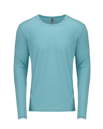 Description: Next Level Mens Triblend Long-Sleeve Crew neck T-Shirt. Fabric is lighter weight 4.3oz and made from 50% polyester, 25% combed ringspun cotton and 25% rayon jersey. Laundered for reduced shrinkage. Colors: Heather White, Indigo, Military Green, Premium Heather, Tahiti Blue, Venetian Gray, Vintage Black, Vintage Navy, Vintage Purple, Vintage Red and Vintage Royal. Sizes: XS-2XL